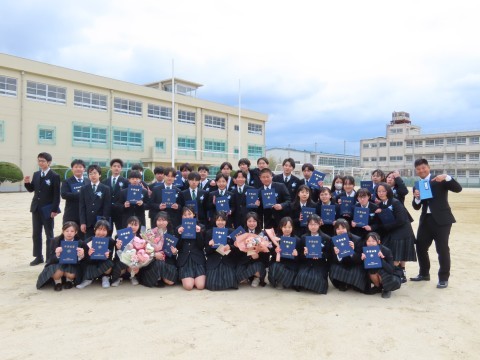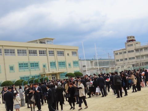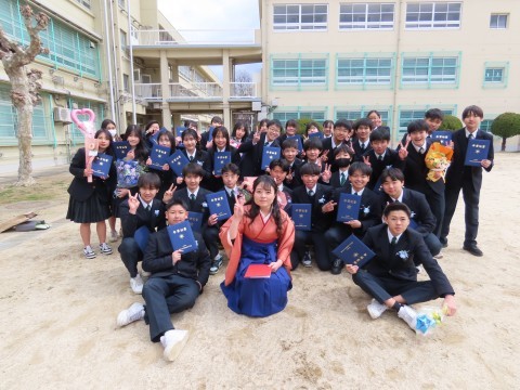 その後、保護者も交え、和気あいあいと中学校の思い出写真を撮っていました。後刻ゆっくり家庭でも話してくださいね。
