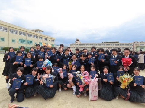 花道を抜け、グラウンドで最後のクラス写真です。みんないい笑顔ですね。