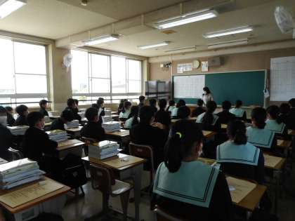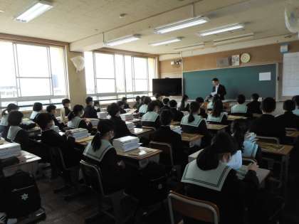 入学式が終わり、各教室で学活を行いました。教科書一式と担任の先生からたくさんのおたよりを配付しましたのでご一読ください。