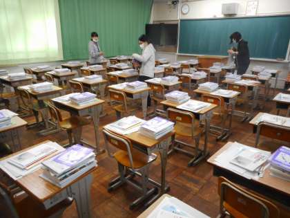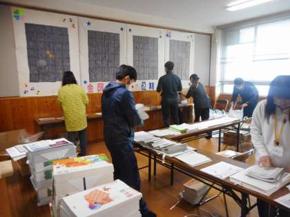 いよいよ、明日からの家庭学習教材・お知らせプリント・教科書等の保護者配付に向けて準備を行っています。