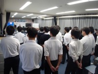 お昼の休み時間が終わり、予鈴でこの集合状態です。すごいですね。きょうは、ハードルの予定です。整列の後、ランニングから始まりました。