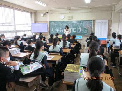 保護者の皆様には、式後、PTA会長様よりPTA活動の紹介とお願い、保健室より特に新型コロナウイルス感染症の対応策と取組みについて、学年主任より学年運営で大切にしていることや学習評価についてなどのお話をさせていただきました。