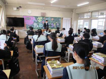 式が終わり、クラスに入って学活をしました。教科書や配付物がいっぱいでしたが、お家でもう一度確認をお願いします。