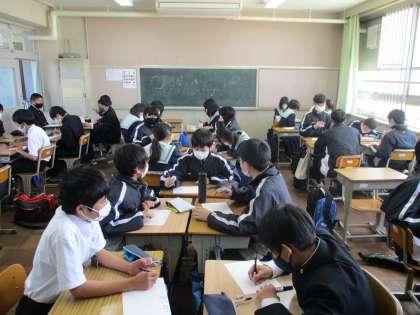 自己紹介カードを作成し、その紹介はペアの人にやってもらいました。クラスでいろいろな取組みをしていて、とっても楽しそうです。