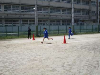 1組女子の体育は50m走の計測でした。自己ベストを出すために、クラウチングスタートからの飛び出しを意識して走りました。
