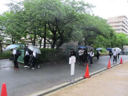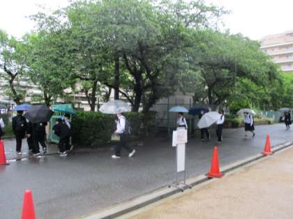 ちょうどお昼くらいから雨が降ってきました。下校時の様子です。