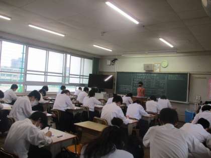 3年生のテストの様子です。3年生は進路を考える重要な1年です。みんな頑張って受験しています。明日も2日めがあります。最後まで頑張りましょう。