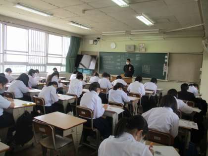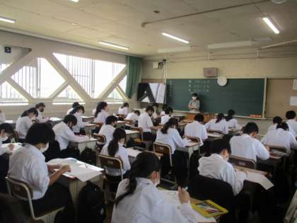 1年生は本日、国語・数学・美術の中間テストを実施しました。中学校での初めてのテストもいよいよ最後の美術のテストです。最後までみんな集中して受験しています。