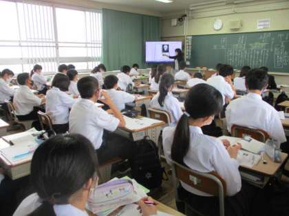 1組の英語では、NSの先生の授業でした。2組の国語では、教科書46ページの『ちょっと立ち止まって』の題材を使って「文章の構成にどんな効果があるかとらえよう」をめあてに学習しました。3組理科では植物の体の共通点と相違点で「根のつくり」「花弁のつくり」「葉脈」で植物の仲間分けについて学習しました。