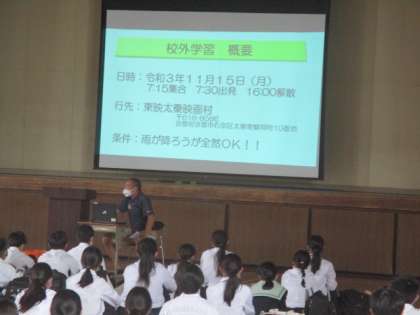 1年生の皆さん!お待たせしました。やっと校外学習を実現することができそうです。きょうの6限に学年主任の先生から、校外学習の実施について、一日の行程やルールなどの説明を聞きました。聞けば聞くほど楽しみがいっぱいになってきた1年生の様子でした。ルールを守って、楽しい校外学習にしましょう。