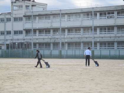 きょうは、3限に3年生の学年練習を行います。朝、先生たちで準備をしています。きょうも頑張りましょう!