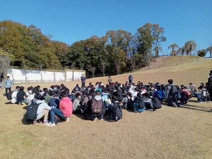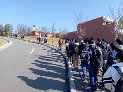渋滞で1時間遅れで到着しました。体験場所に移動です。ぽかぽか暑いくらいの陽気となりました。