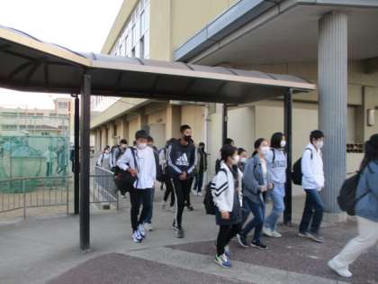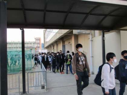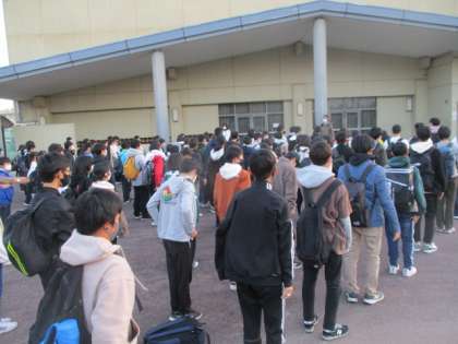 2年生、体育館前に整列完了しました。最後までしっかり意識できています。
