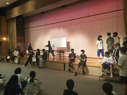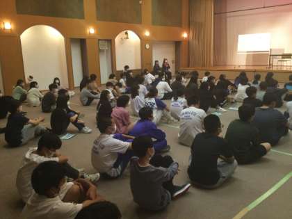 レクレーションが始まりました。まず、クラス対抗似顔絵ゲームです。