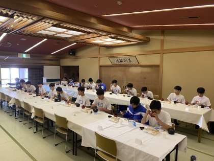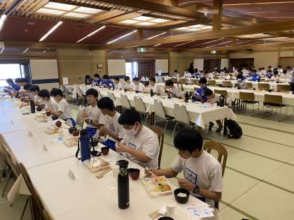 朝食の時間です。1日のエネルギーを蓄えましょう!メニューについて説明をしていただきました!