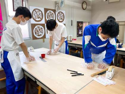 自分で生地から作っています!楽しかったですね!上手に作ったうどんの生地2種類お家に持って帰ります。3日以内に食べてくださいとのことです。よろしくお願いします。