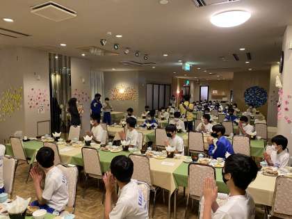きょうは、密を防ぐために三会場に分かれてクラスごとでいただきました。