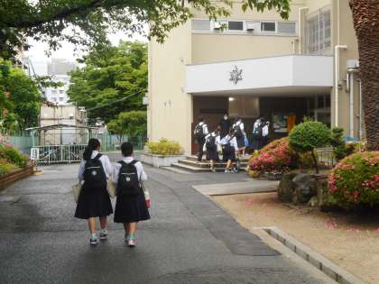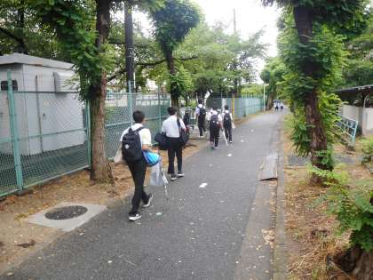 雨がパラパラと降っていますが、登校する生徒の様子を見ると傘をさすほどではないようです。