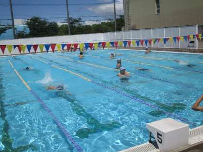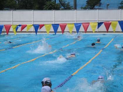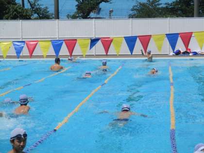 柔軟体操をして、バディを確認し、シャワーを丁寧に浴びます。安全に気を付けての入水です。プールに入ると指示をしっかり聞いて、楽しそうに、気持ちよさそうに泳ぐ生徒のみんなの様子が印象的でした。一生懸命水泳の練習をしましょう。