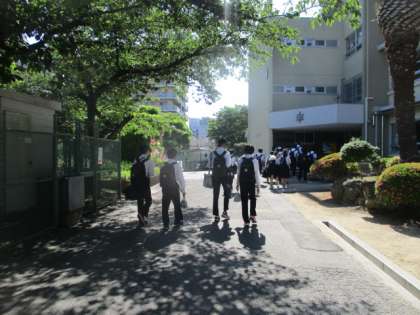 爽やかな青空が広がっています。生徒の皆さんも元気に登校です。