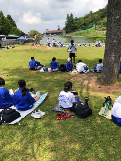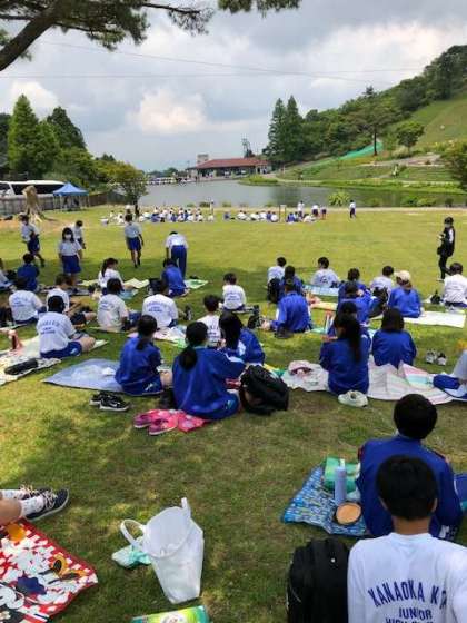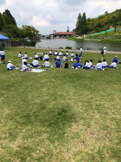 午前中のスポーツビルディングを終了し、自然の中で昼食をとっています。