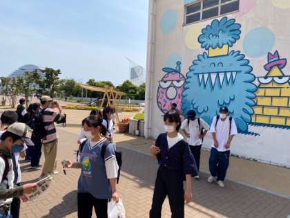 オリエンテーションのが始まっています。班でポイントを探しています。