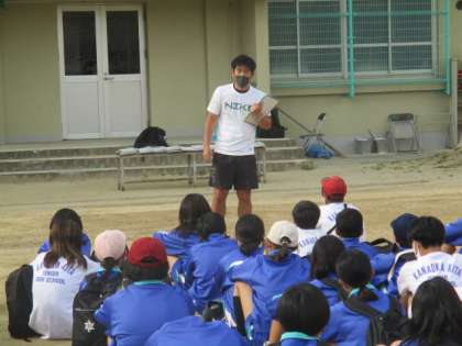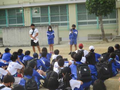 1年生も4時30分頃、学校に到着しました。生徒の司会により解散式が行われ、代表生徒のお話と学年主任のお話がありました。きょうはみんなで楽しめました。