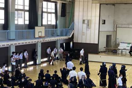 本日、本校の2名が剣道の強化練習会に参加しています。ふたりは昨年度末、強化選手に選ばれ、きょうの練習会に参加できました。大勢の方たちの前で頑張っています。