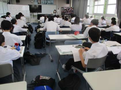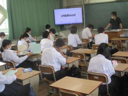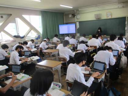 音楽の授業では、「ブルダバ」を聴いて、曲の情景を音楽的要素の面から考えようという目標で学びました。英語の授業では、新しい単語の練習をしています。国語の授業でも、説明文の中に出てくる新出語句をタブレットを使って調べています。