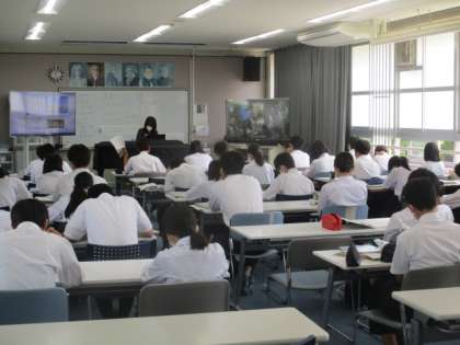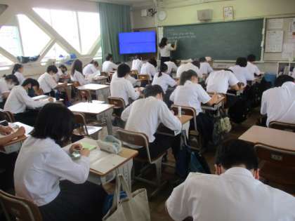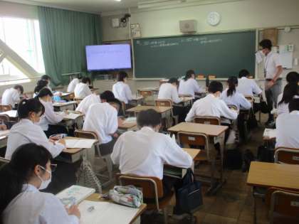 数学の授業では、平方根を活用して解く問題に取り組みました。どのように解くのかを考え、解くための様々な視点を学んでいます。家庭科の授業では、幼児の身体について学んでいます。音楽の授業では、ブルダバを鑑賞しています。音楽が表す情景を意識して聴いています。