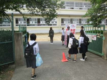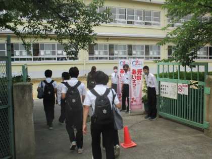 おはようございます!金曜日は、生徒会役員のメンバーが一緒に「あいさつ運動」を行ってくれました。