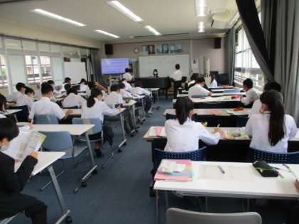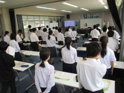 『はるかな道へ』の歌のテストでした。声量・音程等5項目のテストの観点があり、その説明を聞いた後、練習をし、2人ずつでテストを行いました。全員が見見守る中、緊張しながらしっかり声を出して頑張りました。