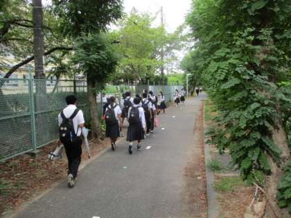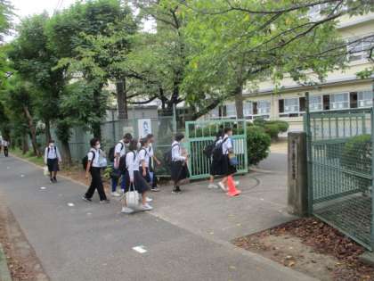 登校の様子です。きちんと校舎側を歩けています。どんな時も友達と歩く時には意識してほしいと思います。