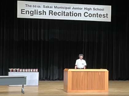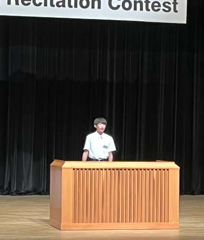 本日、東文化会館で英語暗唱大会が行われ、本校からも代表者が出演しました。本校は、27番めの出番で待っている時間もドキドキでしたが、発表タイトルは日本語に訳すと「絵文字、日本から世界へ」でした。静まり返った会場でとても緊張したと思いますが、本番はとても力強く練習以上に表現できました。お疲れさまでした。