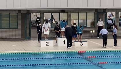 本日、大阪プールで開催された大阪府総合体育大会の水泳競技の部の100mバタフライに出場した本校水泳部員が大会新記録を出し、会場から大きな拍手をいただきました。すごいです!おめでとうございます!