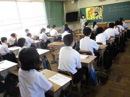 2年生は、宿題テストに取り組んでいます。夏休みの宿題の範囲のテストです。1年生で学んだことも思い出して、テストに取り組んでいます。今後の学習にも生かしてほしいです。