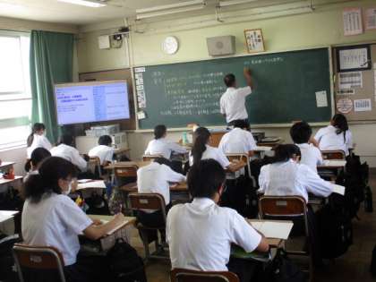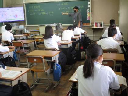 1組と3組は社会の授業です。1組は鎖国について、3組は江戸時代の五街道について学んでいます。2組は理科で体のつくりや血液の循環について学んでいます。