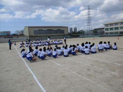 1年生の学年練習では、全員リレーと学年種目の整列の練習をしました。昨日よりも整列にかかる時間が短くなっています。学年全体のまとまりを感じます。