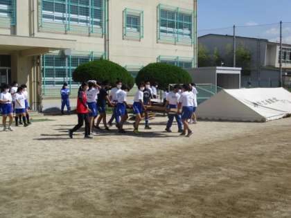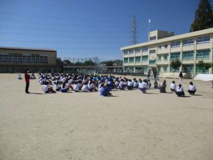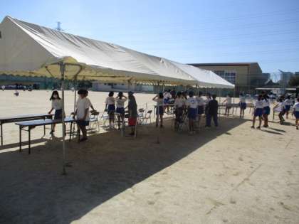 明日27日の体育大会実施に向けて、前日準備を行っています。生徒のみんなが、自主的に動き準備をしています。