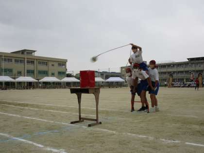 どのクラスも学年種目ローハイドの練習をたくさん積んできました。練習の時より、みんな上手に当てることが出来ています。