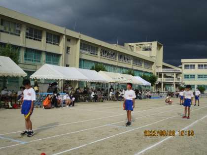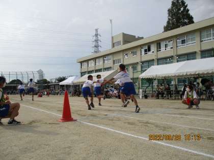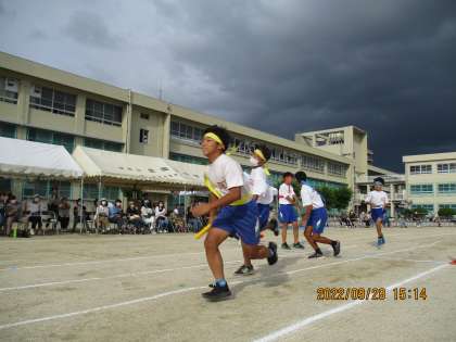 1年生の800mリレーがスタートしました。最後の種目は1人200m走り、4人でつなぎます。しっかり準備運動をしてレースがスタートしました。最後まで走りきる姿に感動しました。