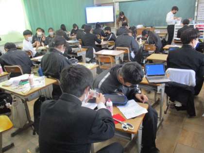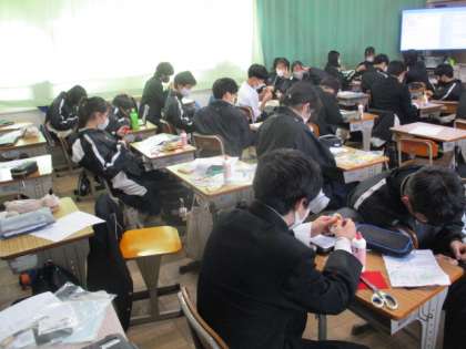 3年生の家庭科では、ペンケースを作成しています。卒業を前に、記念に残る素晴らしい作品を作ってほしいです。