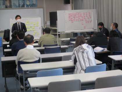 全体で集まり、話し合った内容を共通理解したり、教育委員会の方から指導助言をいただいたりしました。今回の研修を今後の授業に生かしていきたいと思います。