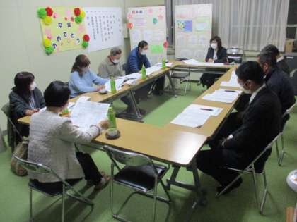 本日、学校評価会議を行いました。学校協議員の方々に、学校の様子を伝え、学校行事や学校の様々な取り組みについて質問やご意見をいただきました。今後の学校の取り組みの改善に生かしていきたいと思います。学校協議員の皆様、ご多用の中ありがとうございました。