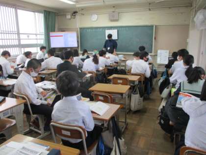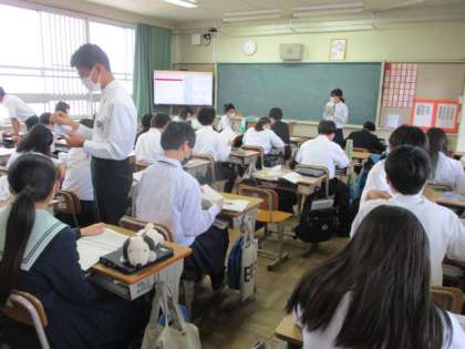 普段の学校生活を見直しています。きょうは、「身だしなみは大丈夫ですか?」と学級代表が声掛けしていました。校外学習のルール決めに繋げるとのことです。