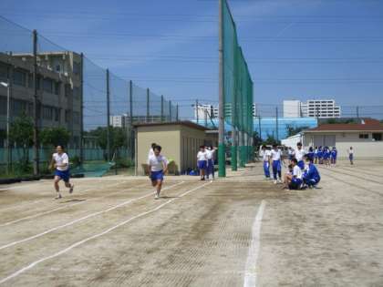 2時間めの体育です。背中が暑いくらい太陽がまぶしくなりました。
