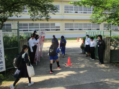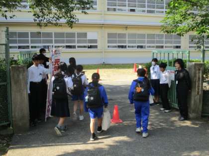 きょうは、1年生が内科検診・水泳前健康調査のため体操服登校です。1年生も学校前の道では学校側を歩く習慣ができてきました。学校前だけでなく、登下校すべての道で片側通行を意識しましょう。