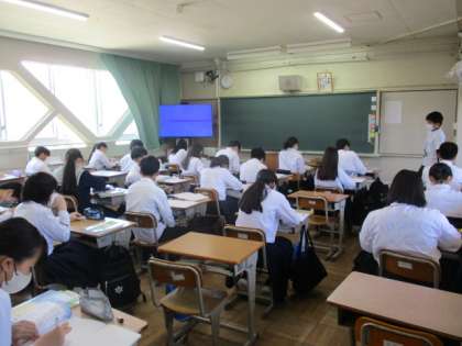体育では、男子はハードル走、女子はテスト前学習を行いました。ハードル走では、頭の位置が上下しないように低い姿勢を意識しながら、跳ぶことに取り組んでいました。女子は、教室で、自分の課題の学習に集中して取り組みました。英語では、英語の課題について、テスト前学習として、教科書を見ながらワークに取り組みました。