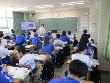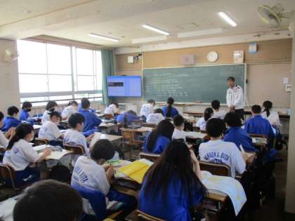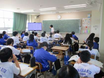 英語では、単語の「母音字の異なる読み方を理解しよう」をめあてに、つづりをみて、みんなで声を出しながら発音しました。技術では、「教室にはどんな材料を使って作られたものがあるか見つけてみよう」を題材に、机は木材と金属でできているなど、みんなで確認しました。社会では、教科書を使って、世界を6つの州に分けるなどの調べ学習をしました。