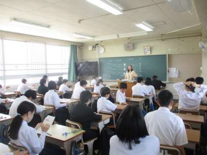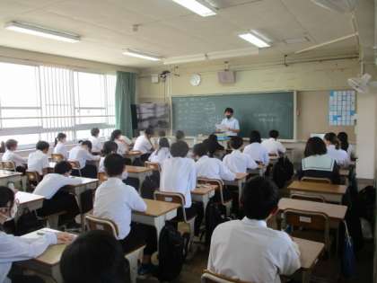 筆記用具など、テストの準備をして、これから理科のテストを配付します。テスト前の緊張感があります。自分の実力を発揮できるよう頑張ってください。